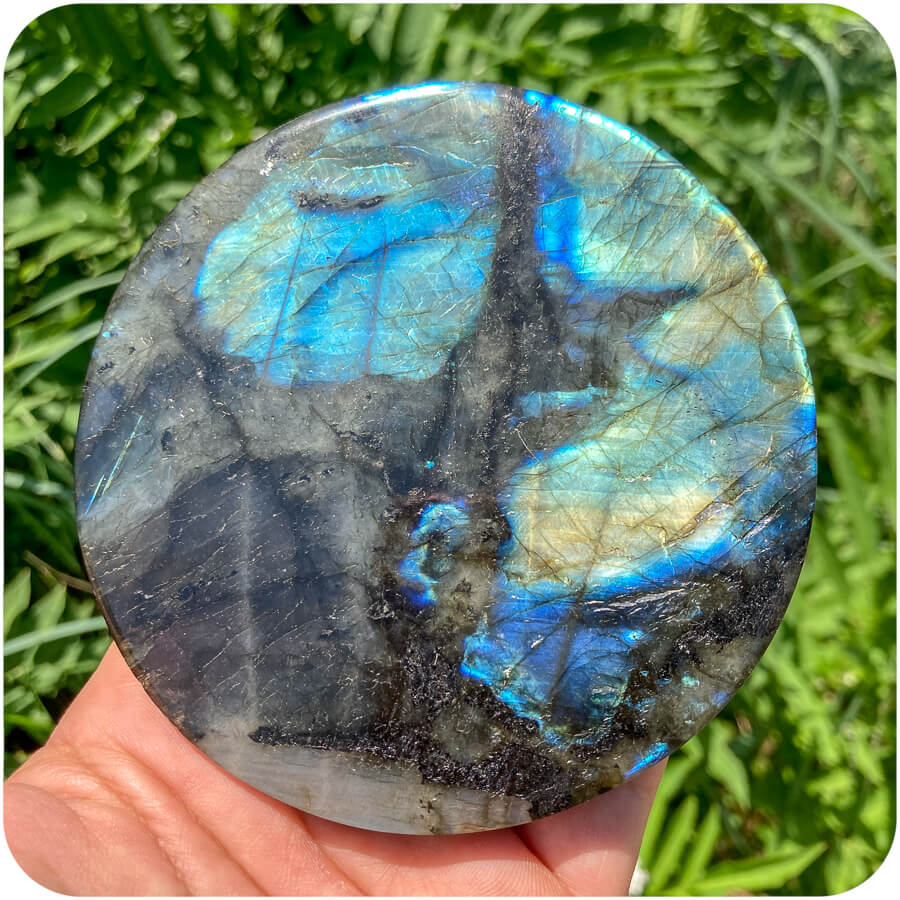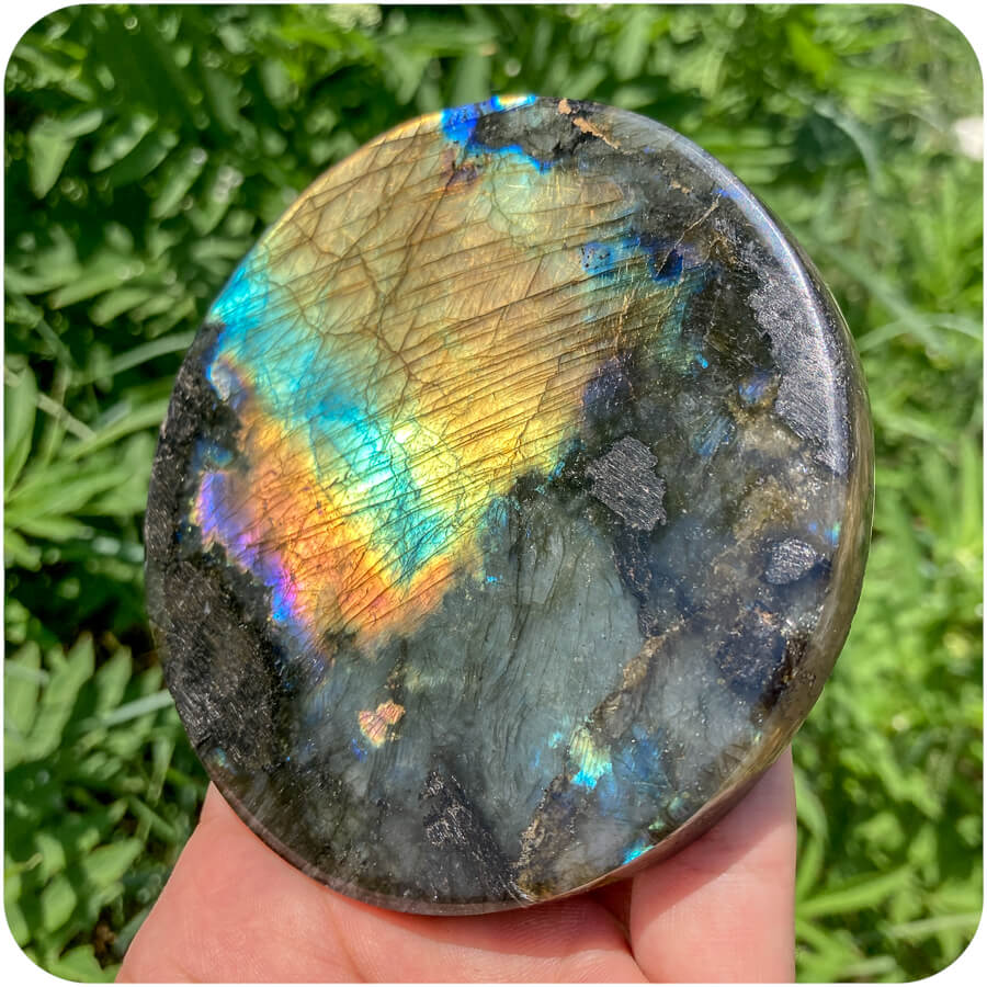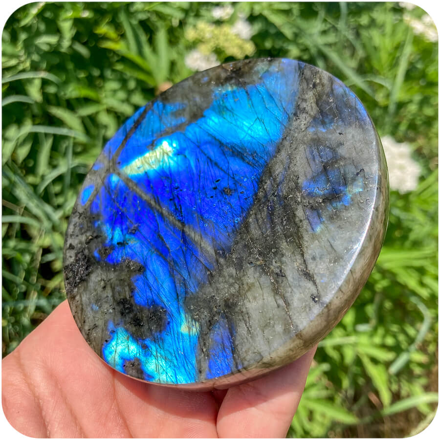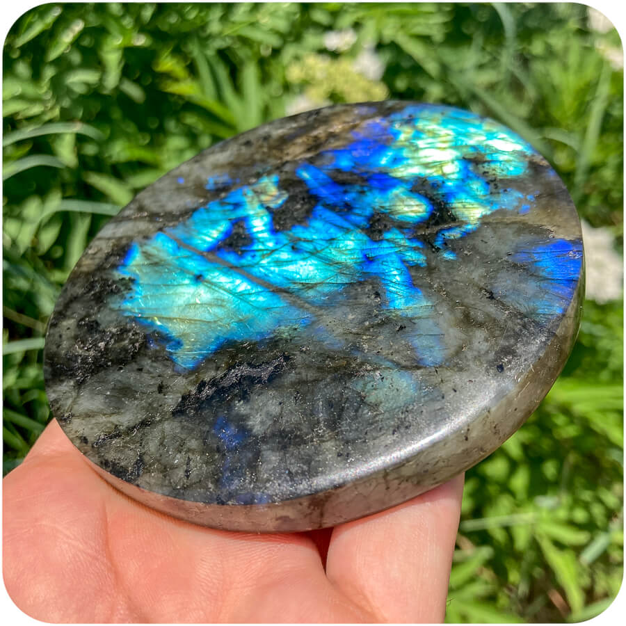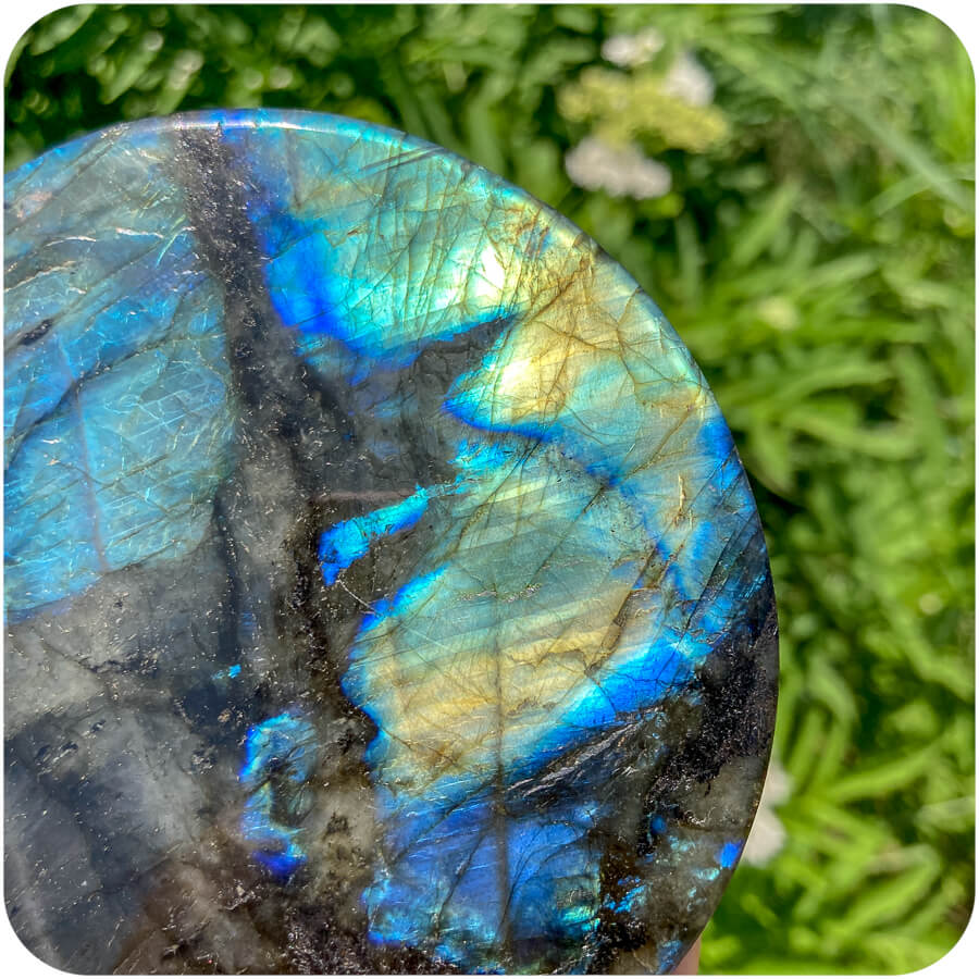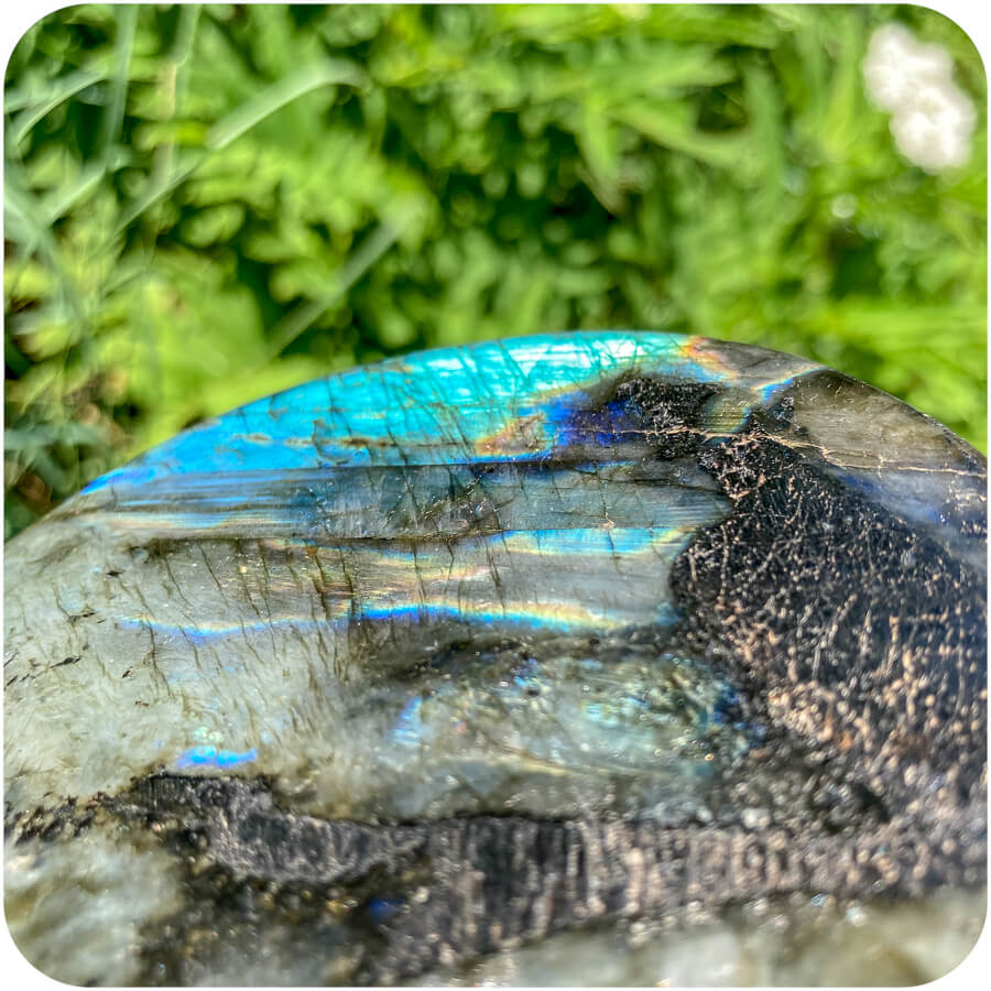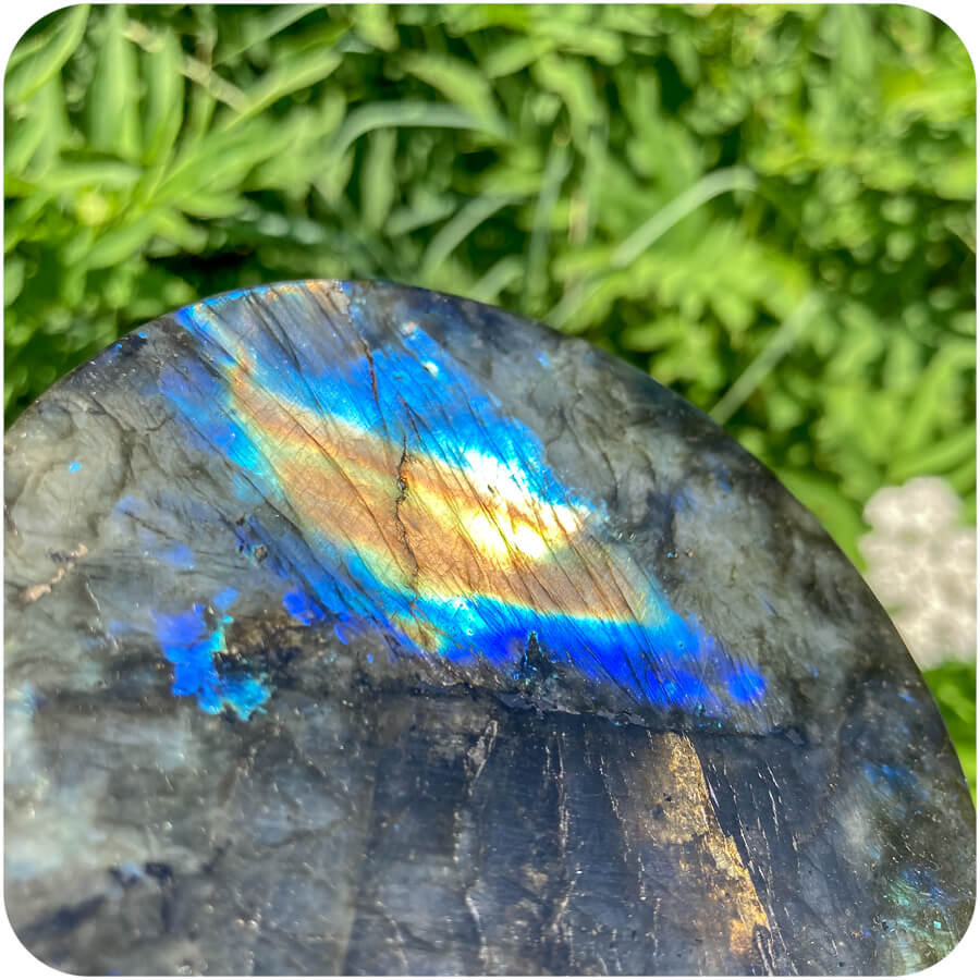Лабрадоритът успокоява свръхактивния ум и енергизира въображението, внасяйки нови идеи. Той е прекрасно средство за връщане на радостта и спонтанността обратно в живота на човек. Камъкът помага да се премахне емоционалното изтощение на ежедневието или свали тежестта от отговорност и събужда чувството за приключение и промяна. 🦋
